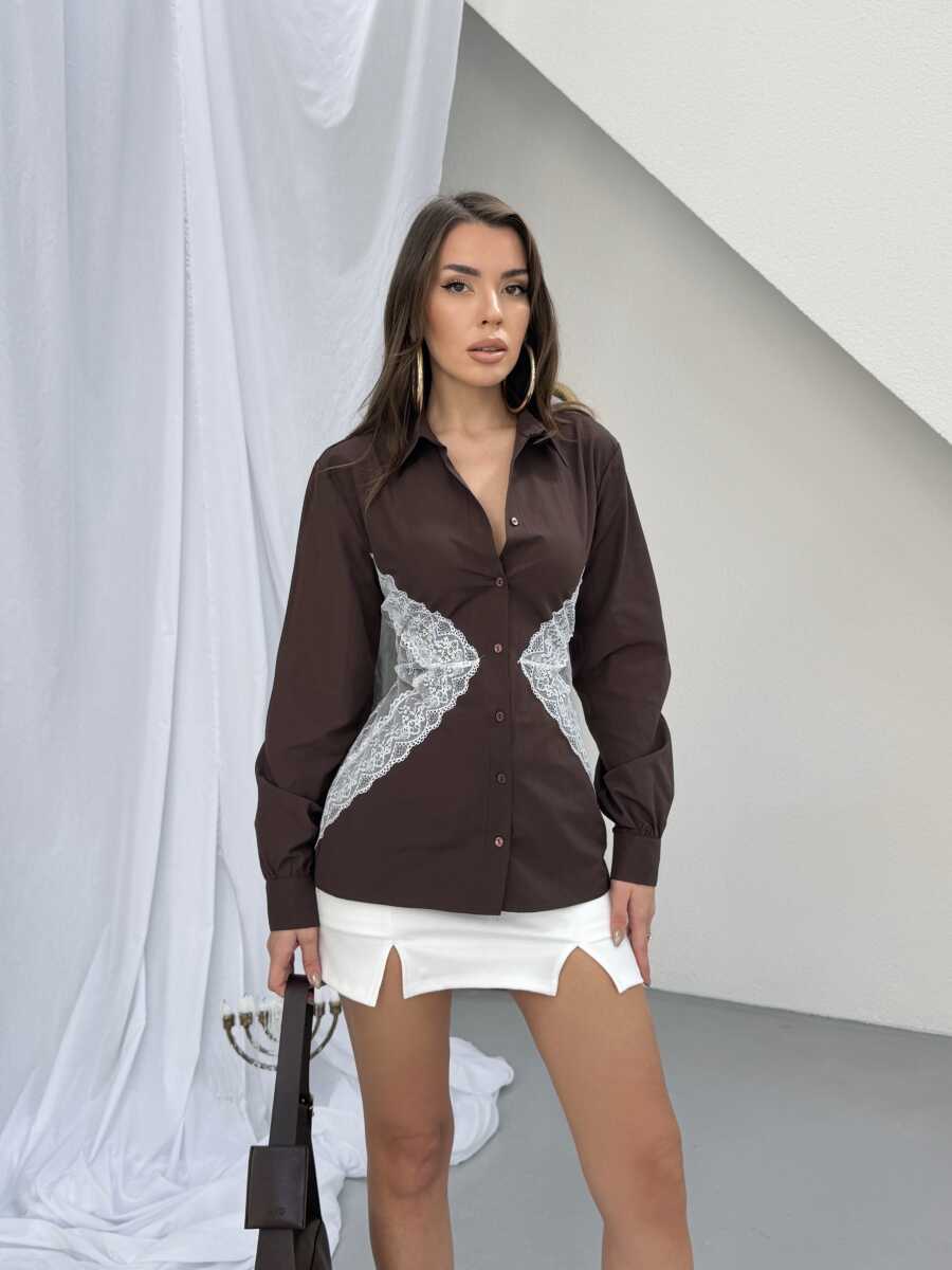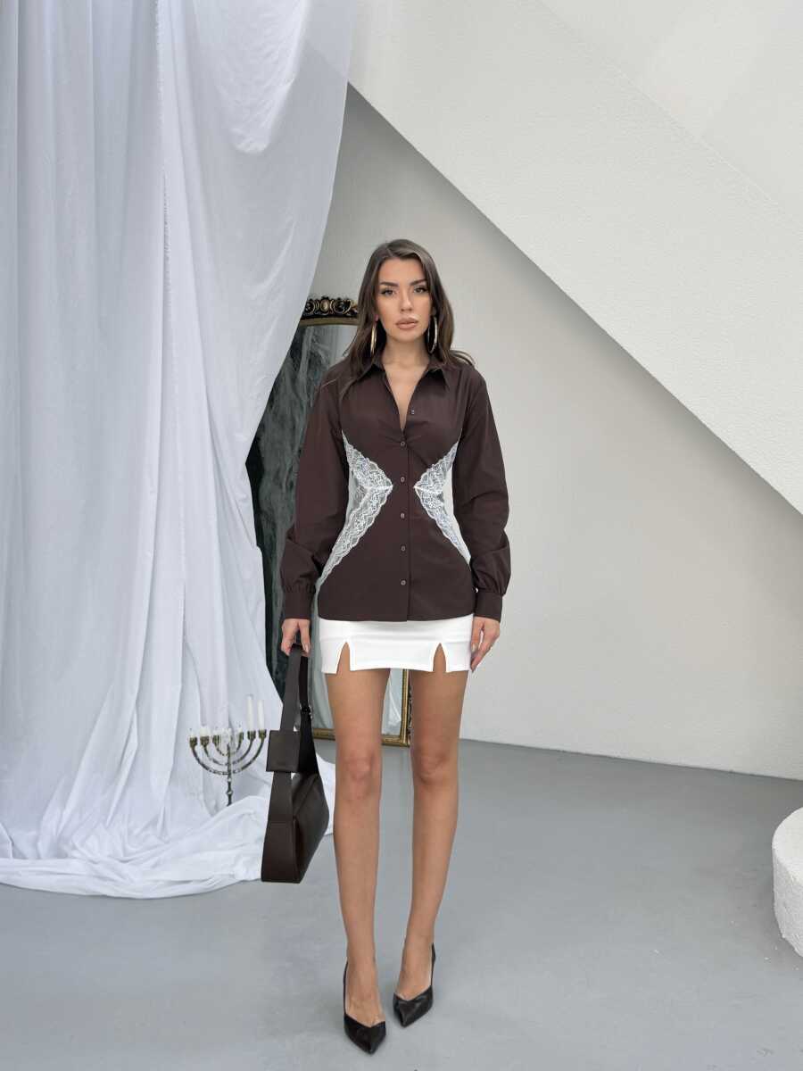 Alexan Dantel Detay Gömlek - Acı Kahve