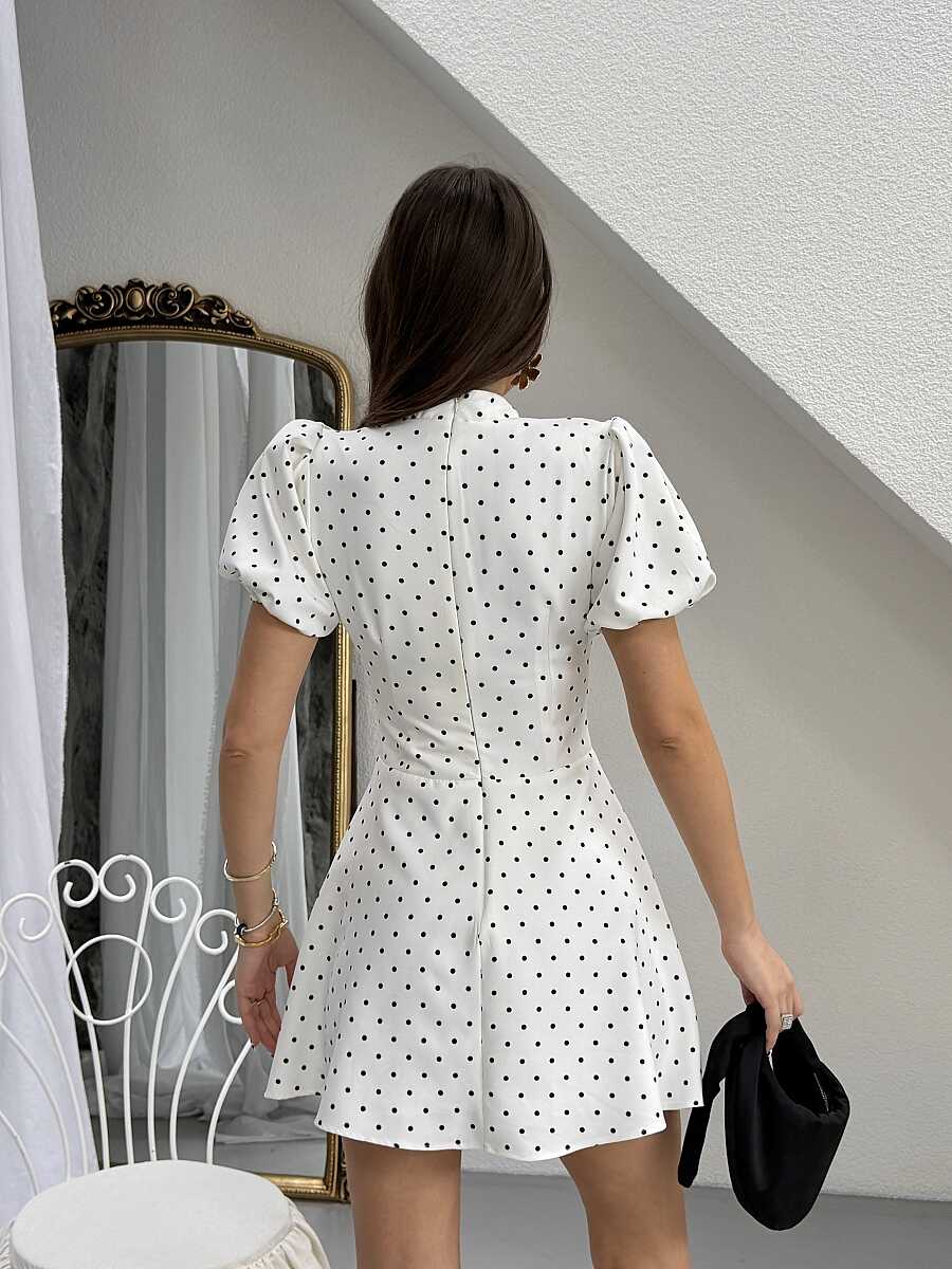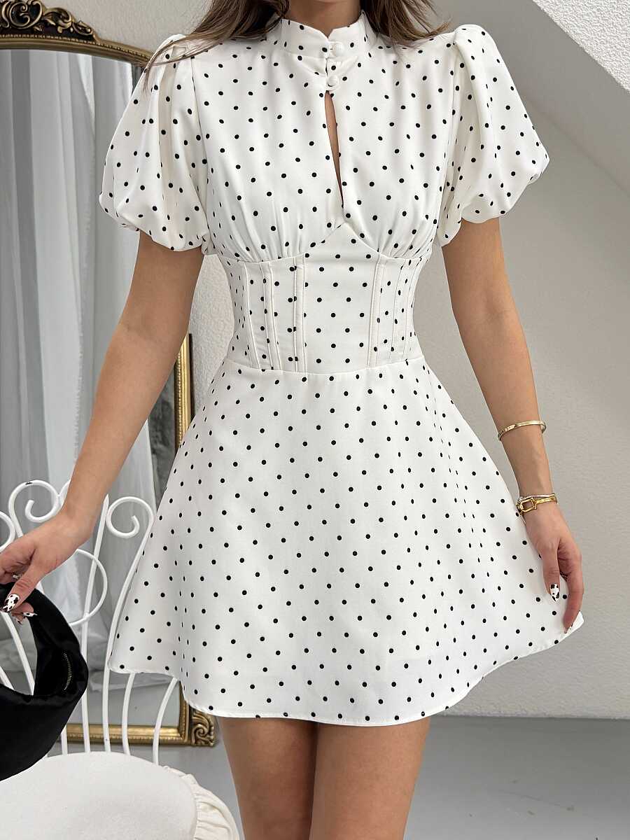 Ocean Puanlı Mini Elbise - Beyaz