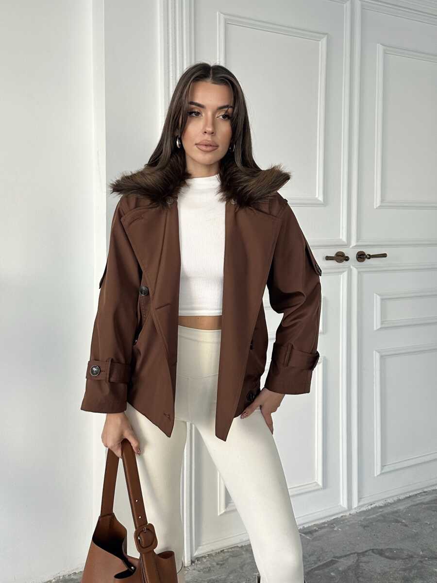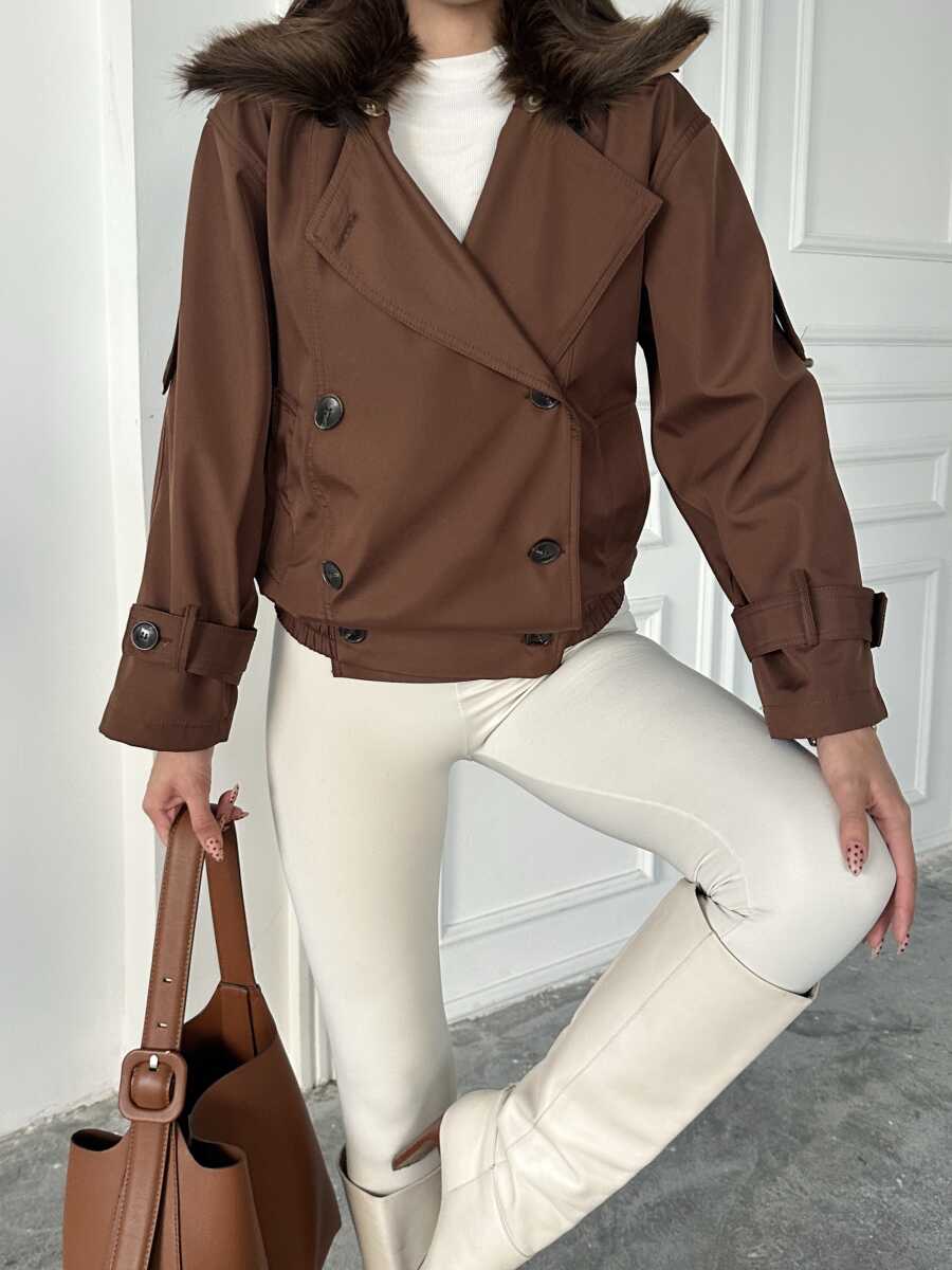Cassa Kürk Detaylı Trenç - Acı Kahve