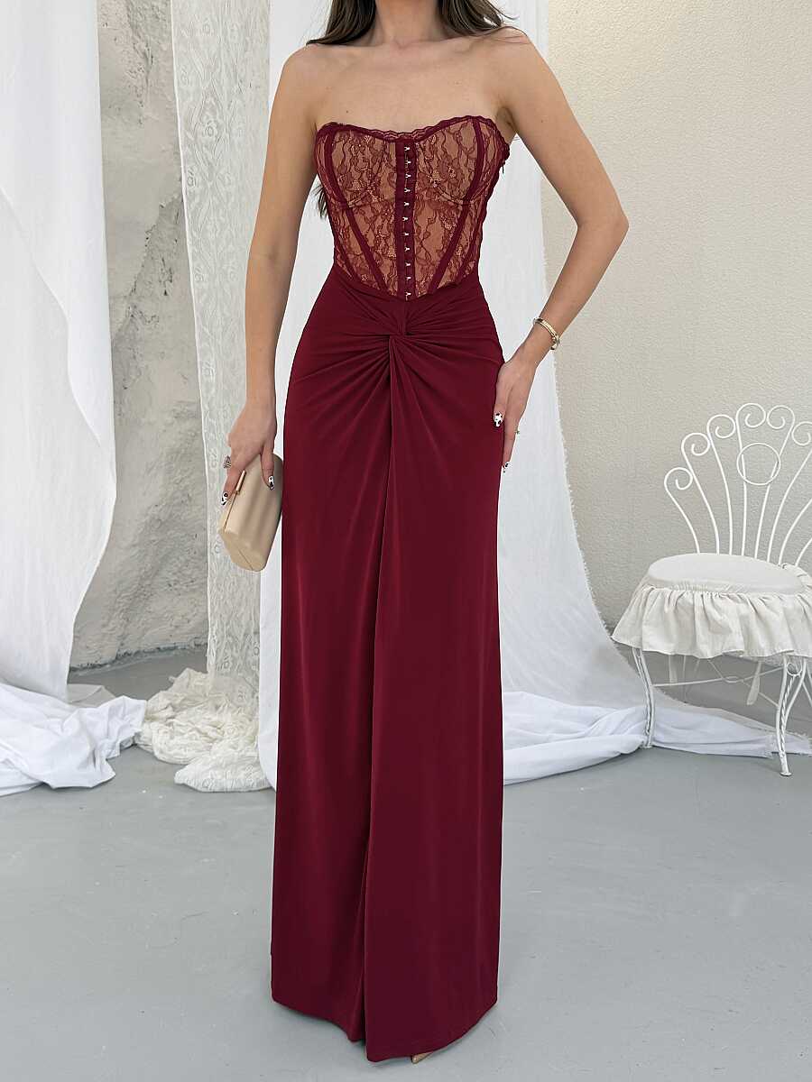 Charline Maxi Elbise - Bordo
