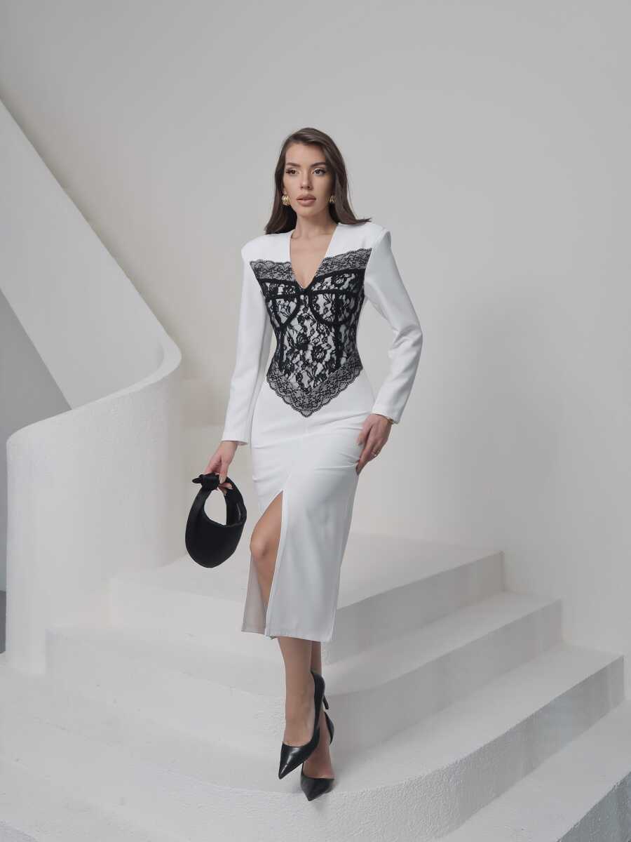 Chester Midi Elbise - Beyaz