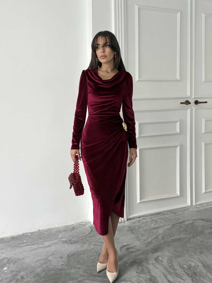 Elder Midi Elbise - Bordo