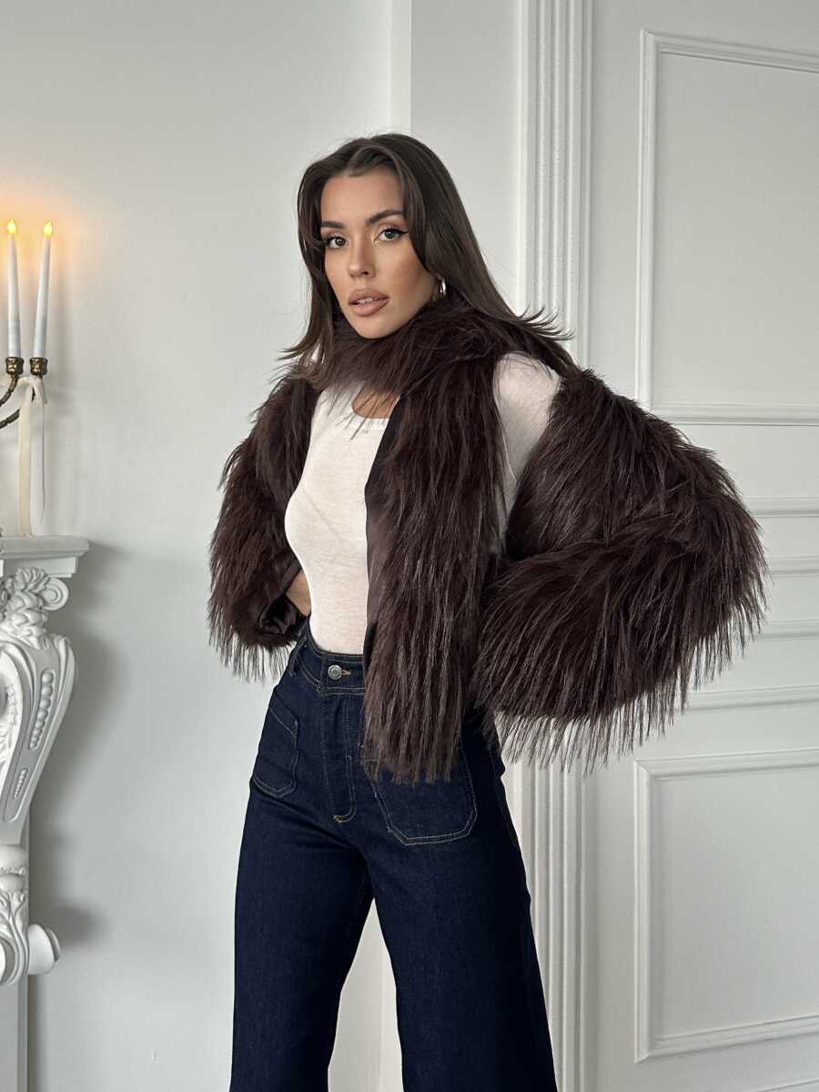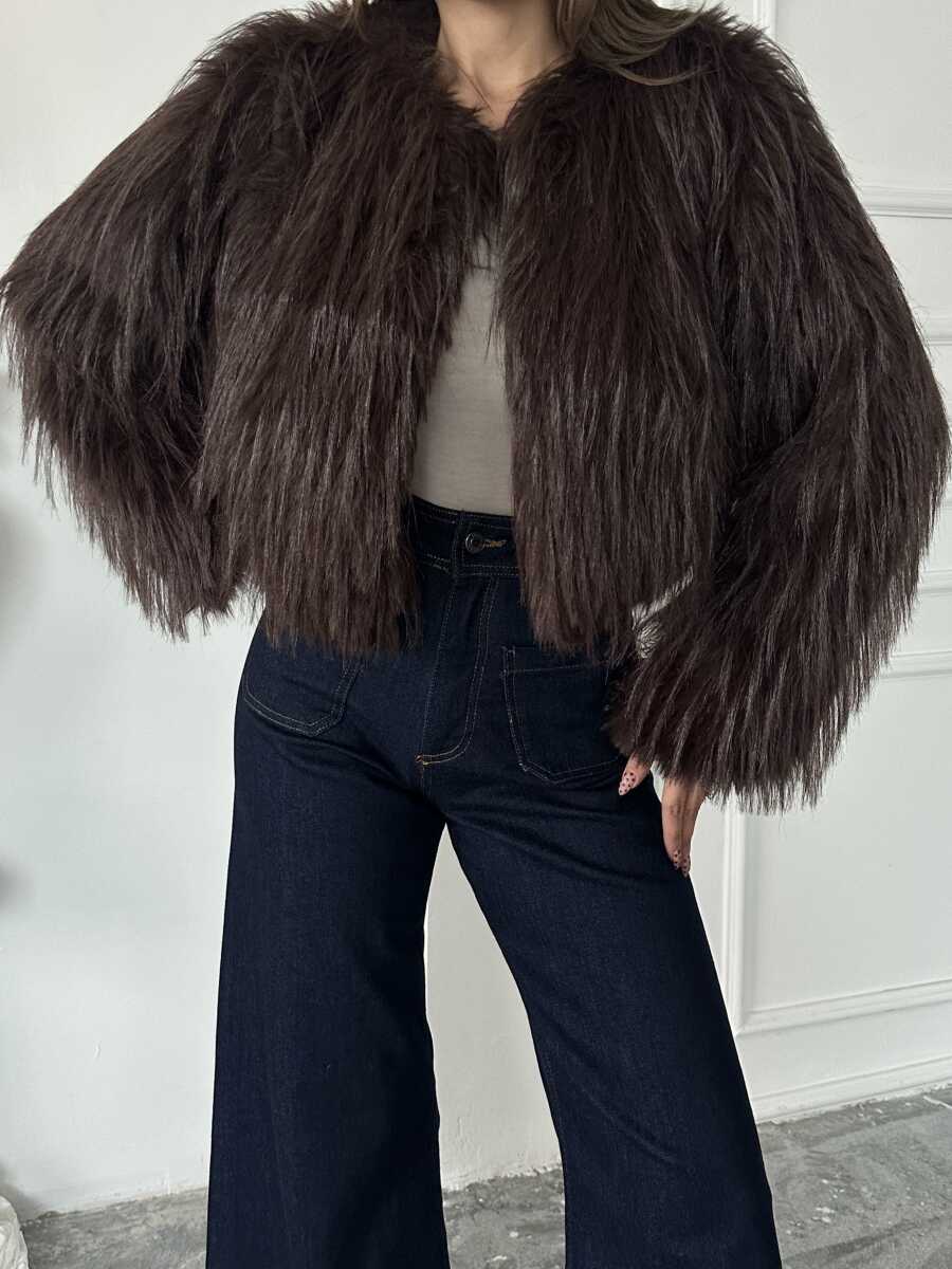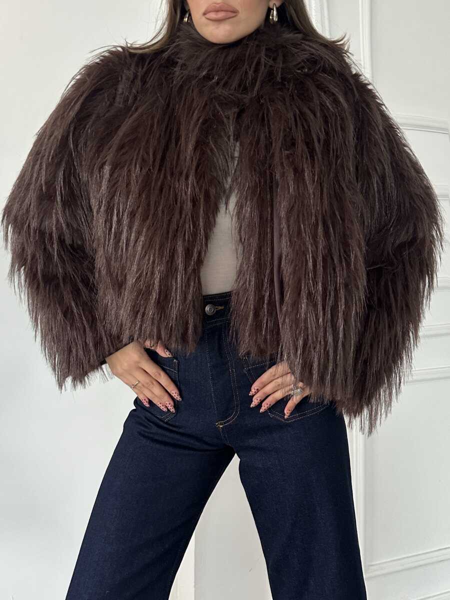 Eliana Atkılı Kürk Ceket - Acı Kahve