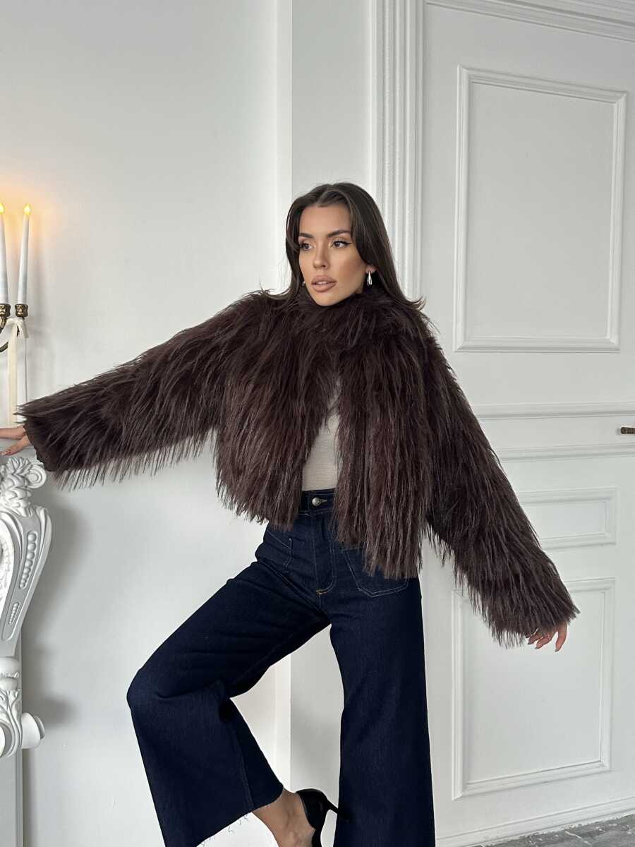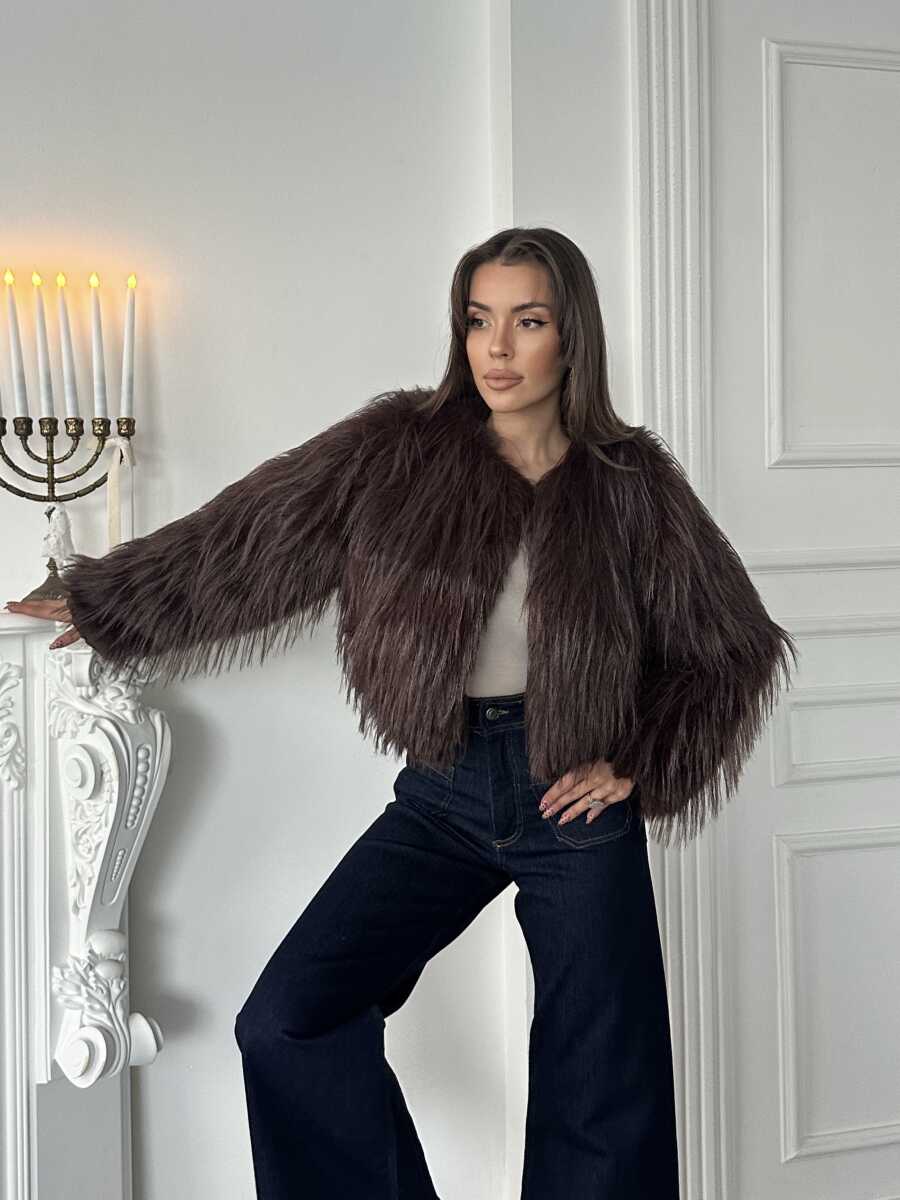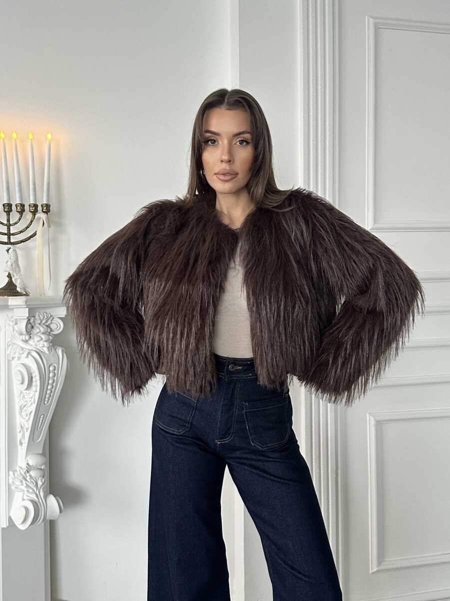 Eliana Atkılı Kürk Ceket - Acı Kahve