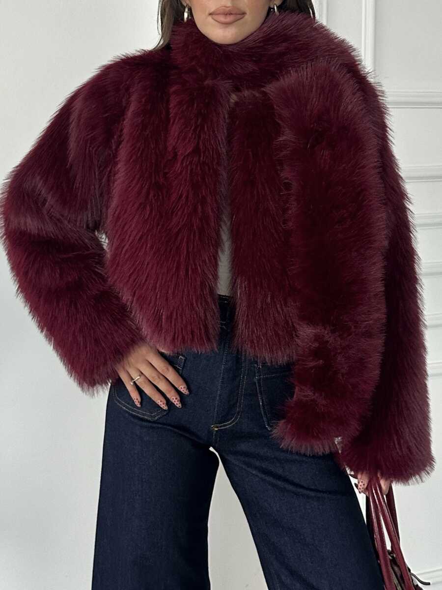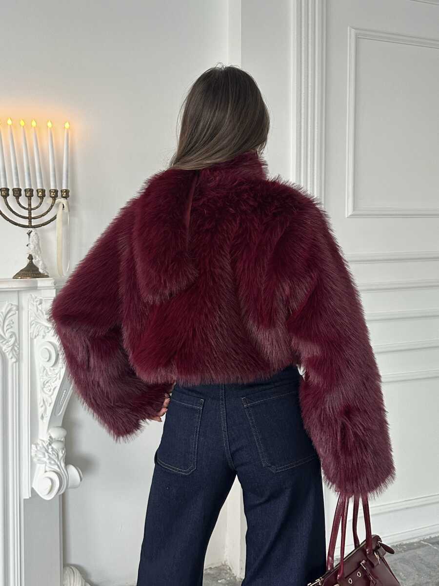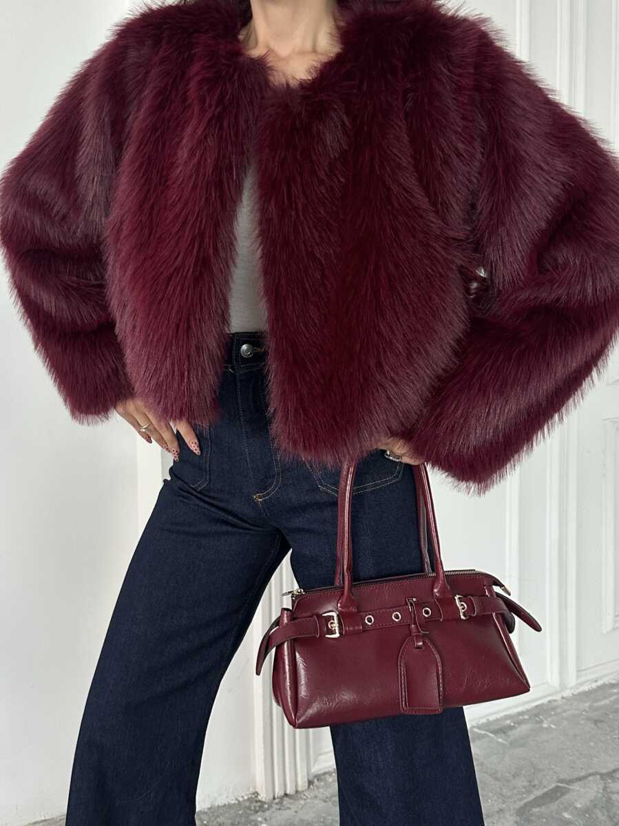 Eliana Atkılı Kürk Ceket - Bordo