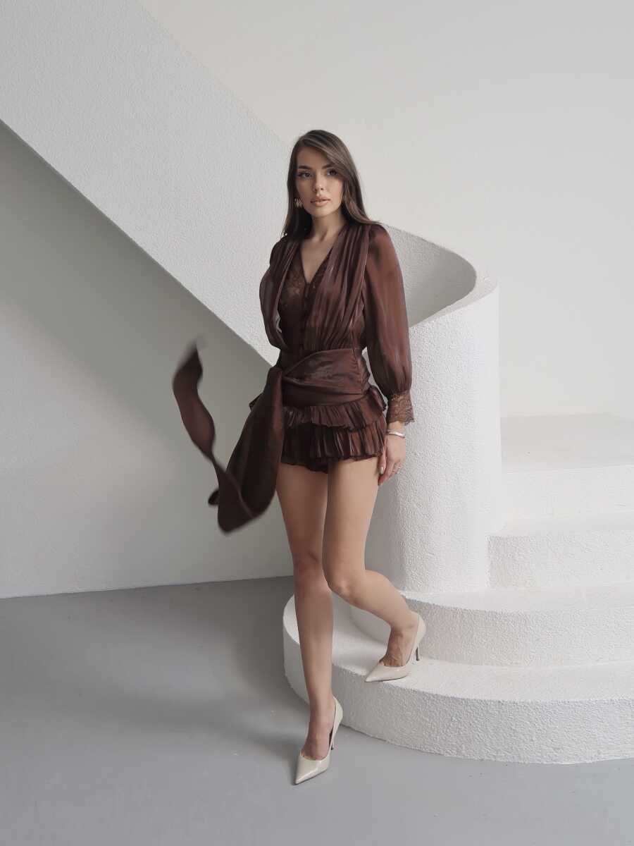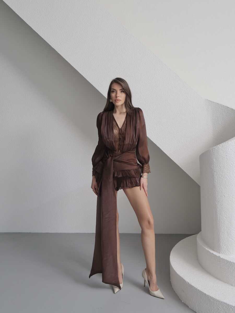 Ezra Dantel Detay Mini Elbise - Yeşil