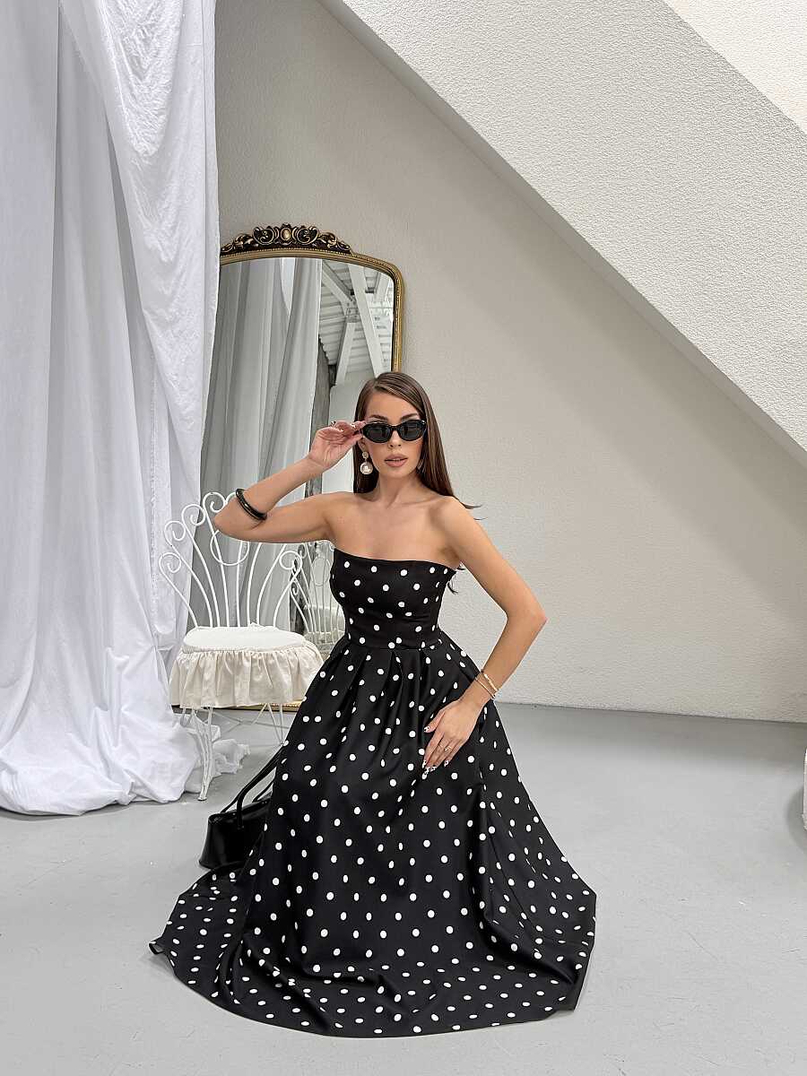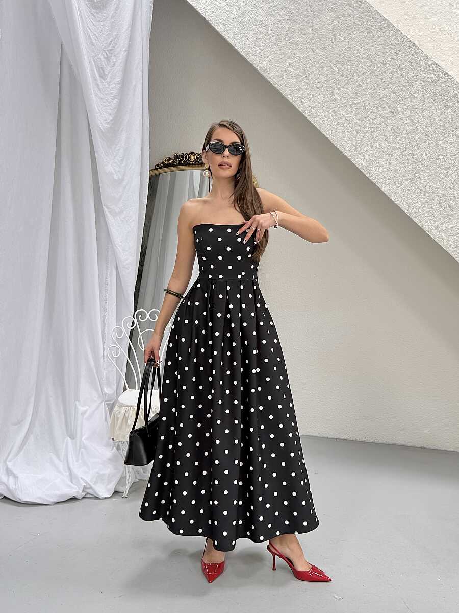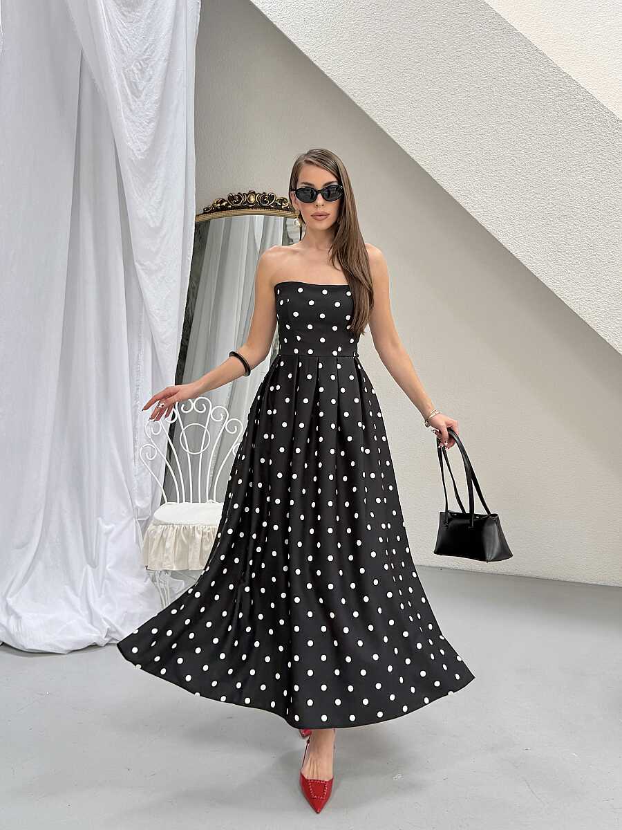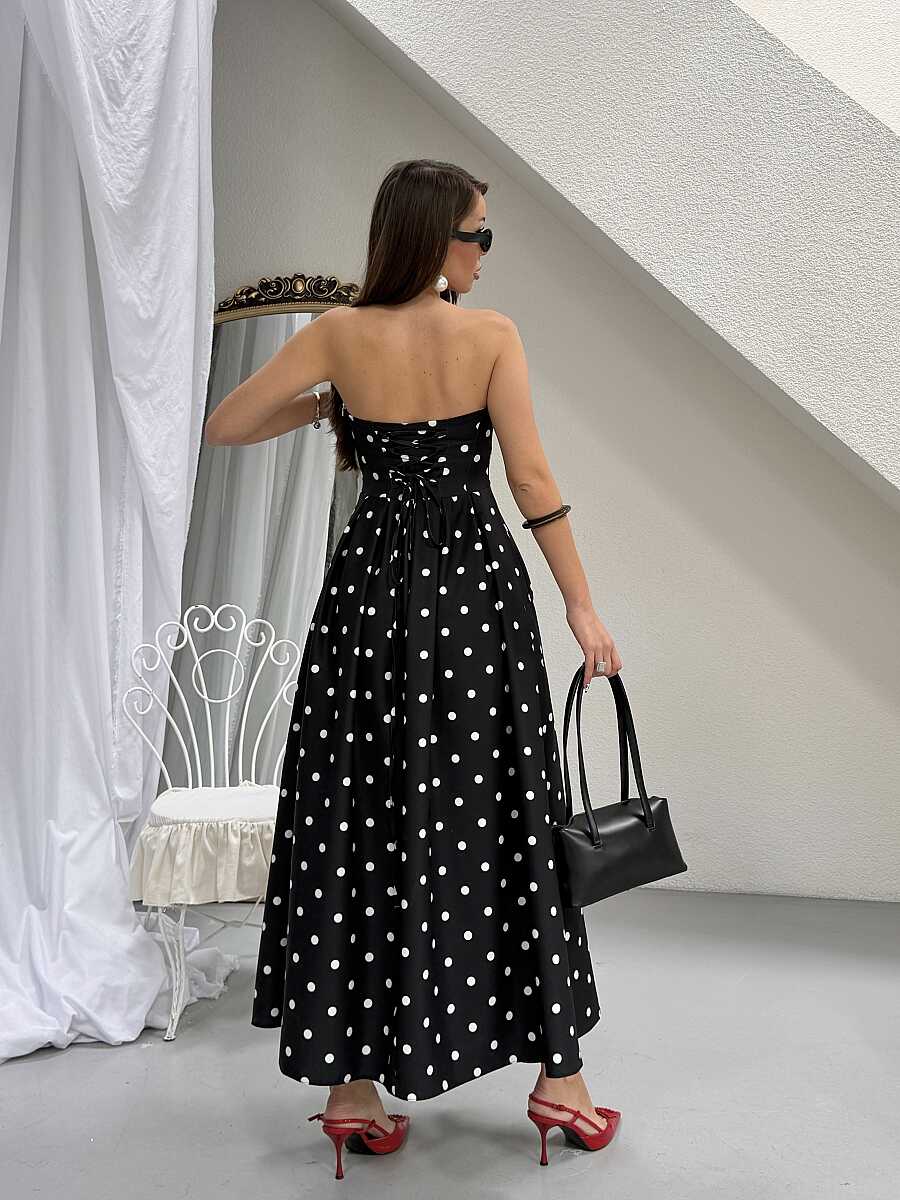 Hope Puanlı Maxi Elbise - Siyah