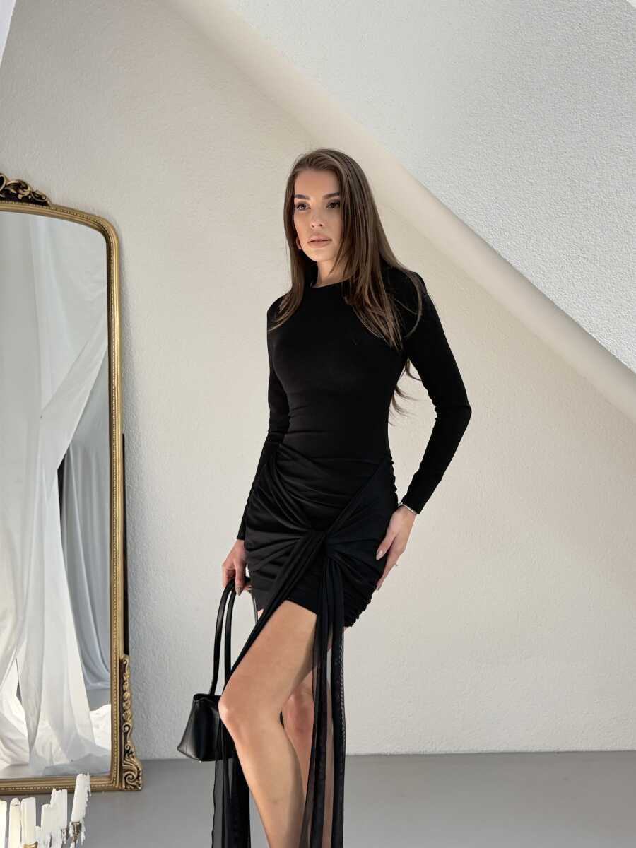 Javed Mini Tül Detay Elbise - Siyah
