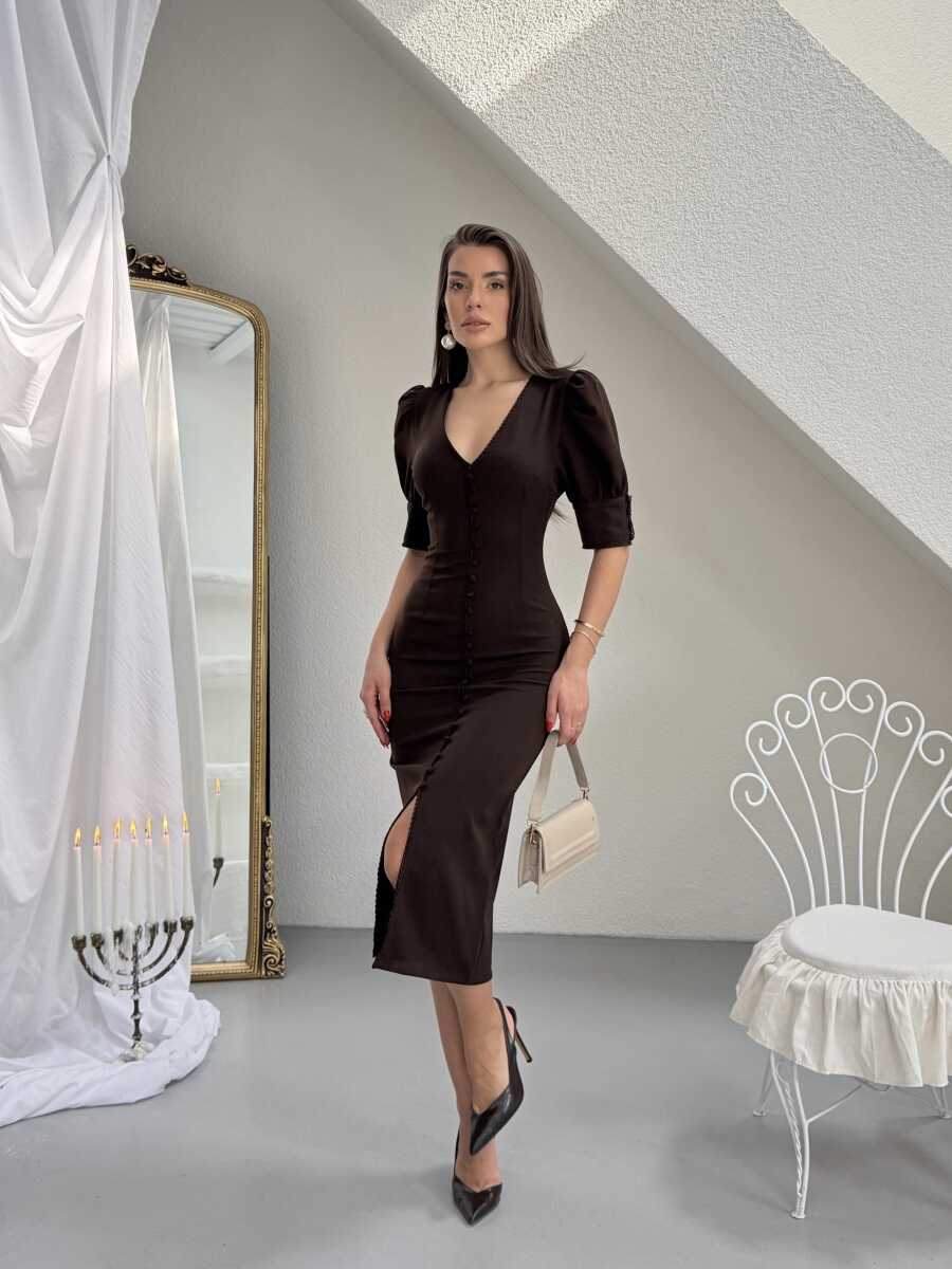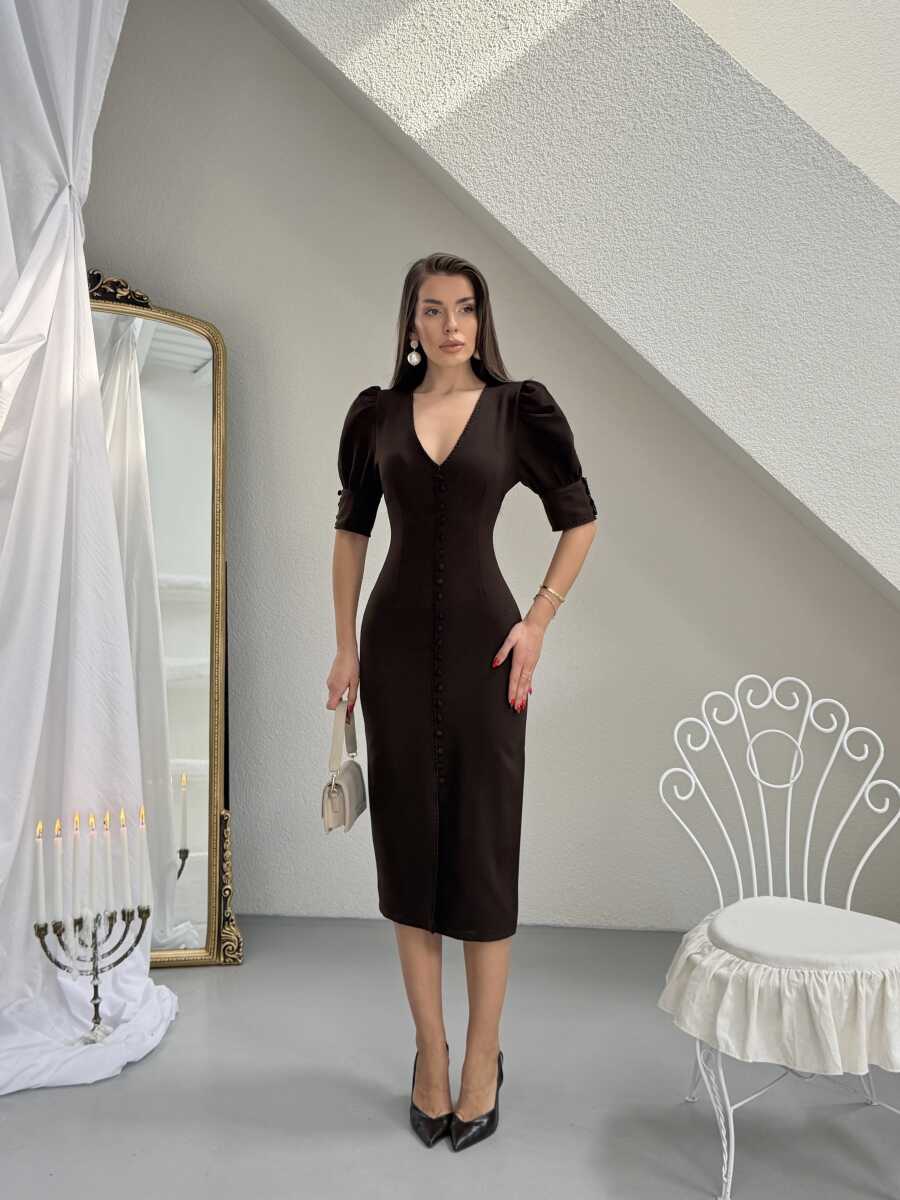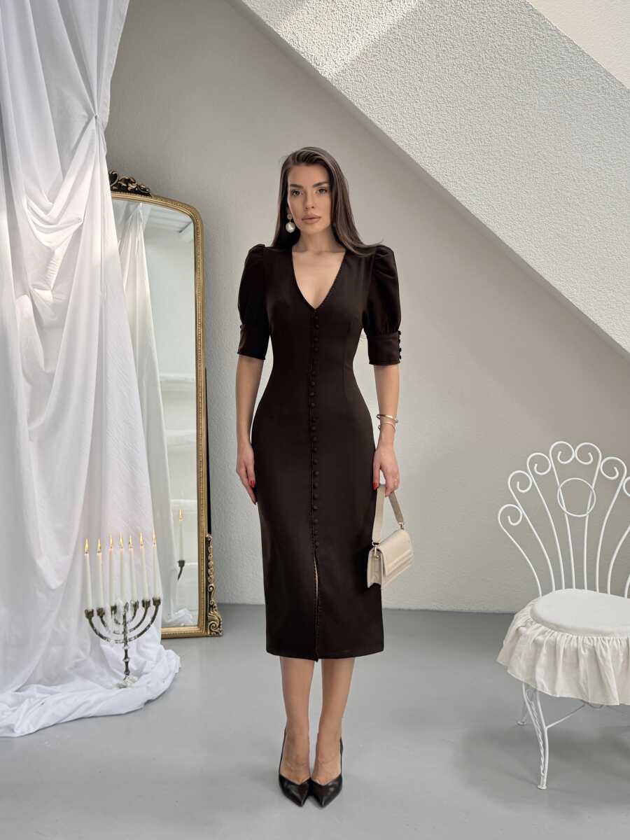 Juno Midi Elbise - Acı Kahve