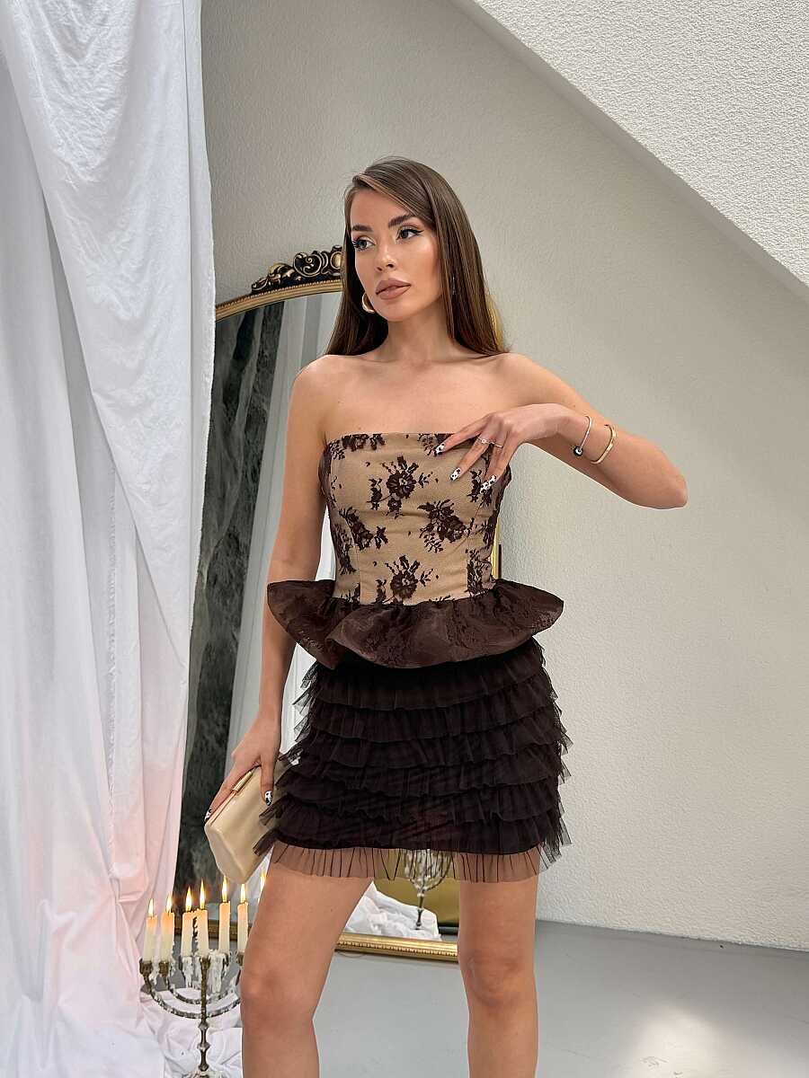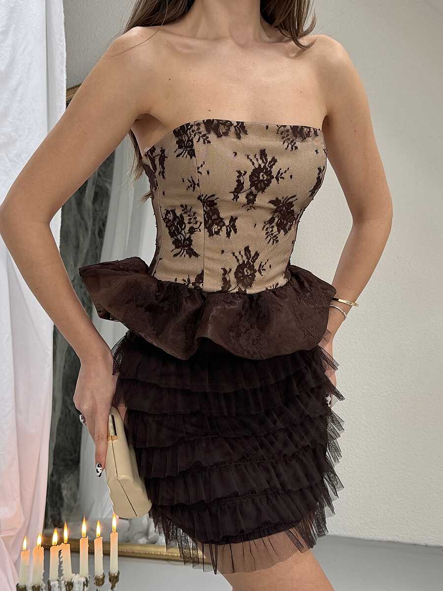 Brunelle Mini Elbise - Acı Kahve