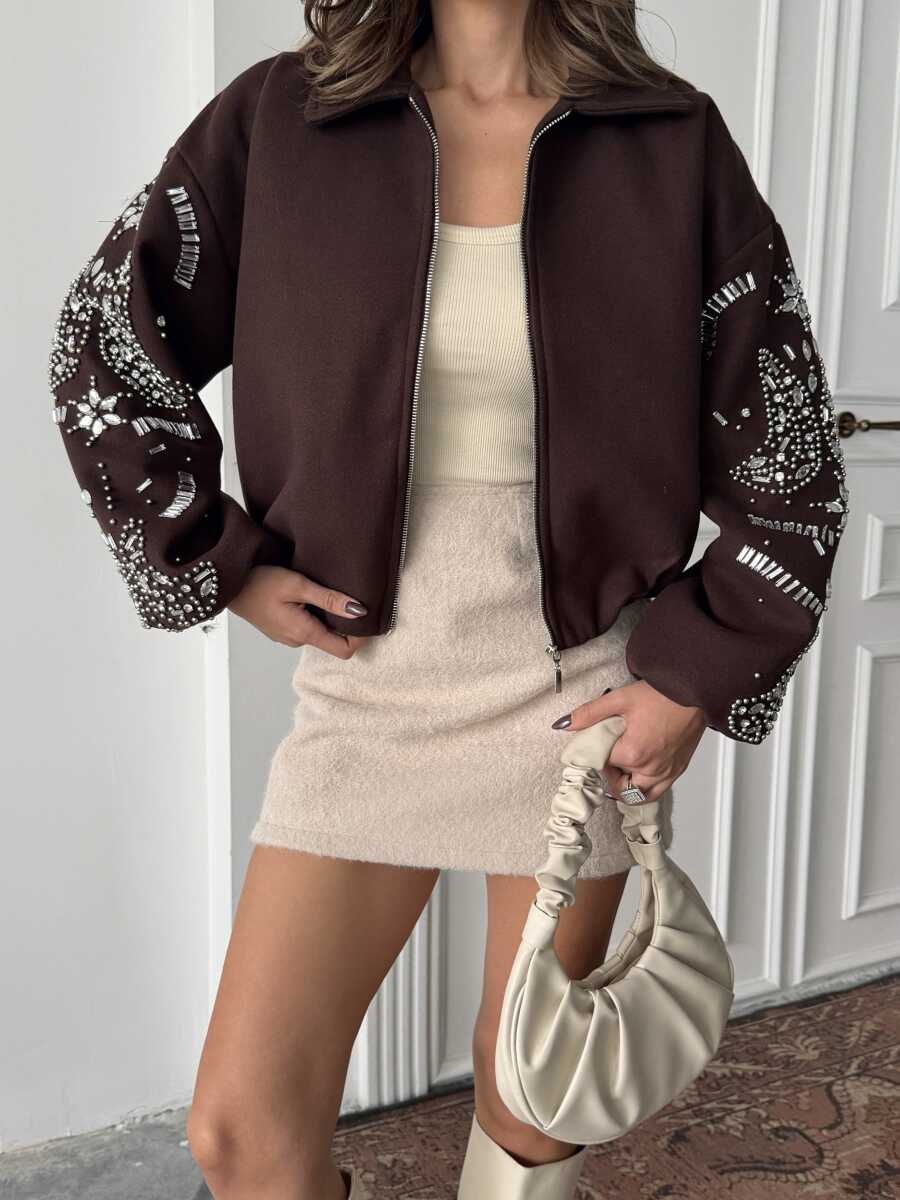 Nastur Bomber Taşlı Ceket - Acı Kahve