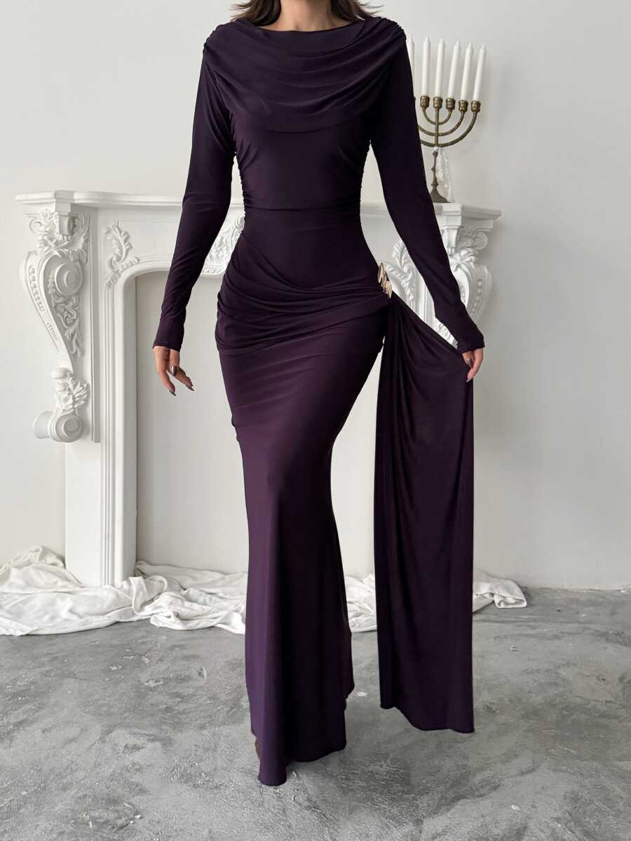 Nova Maxi Elbise - Mor