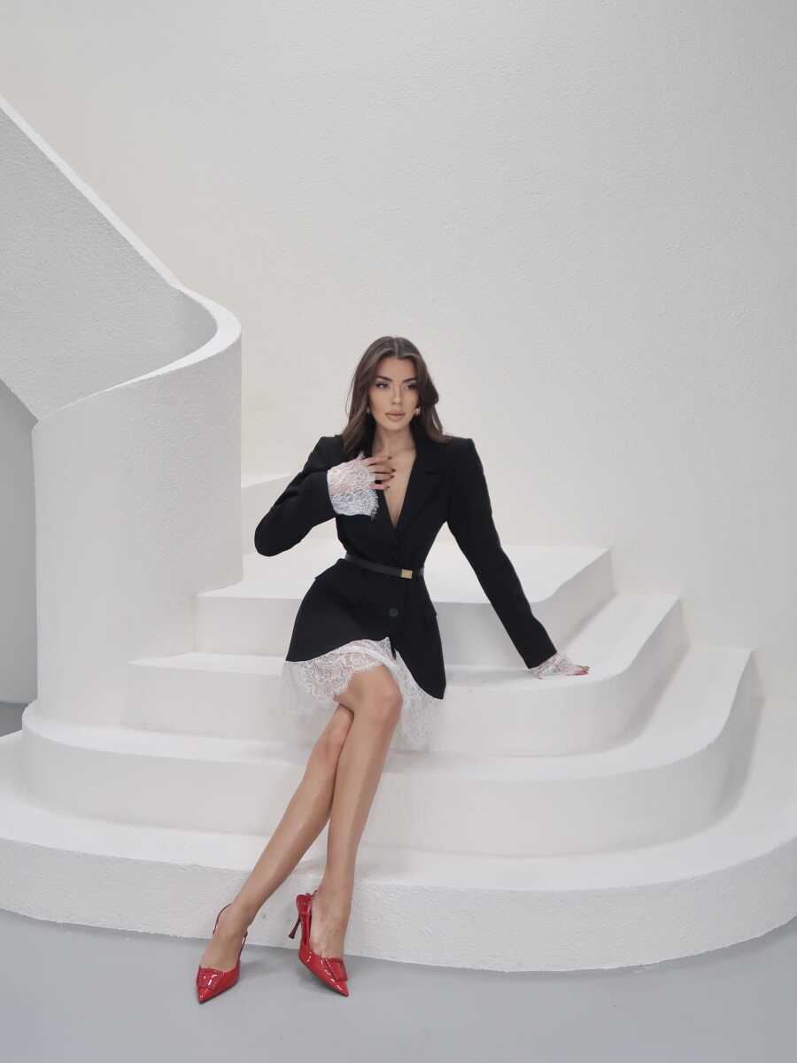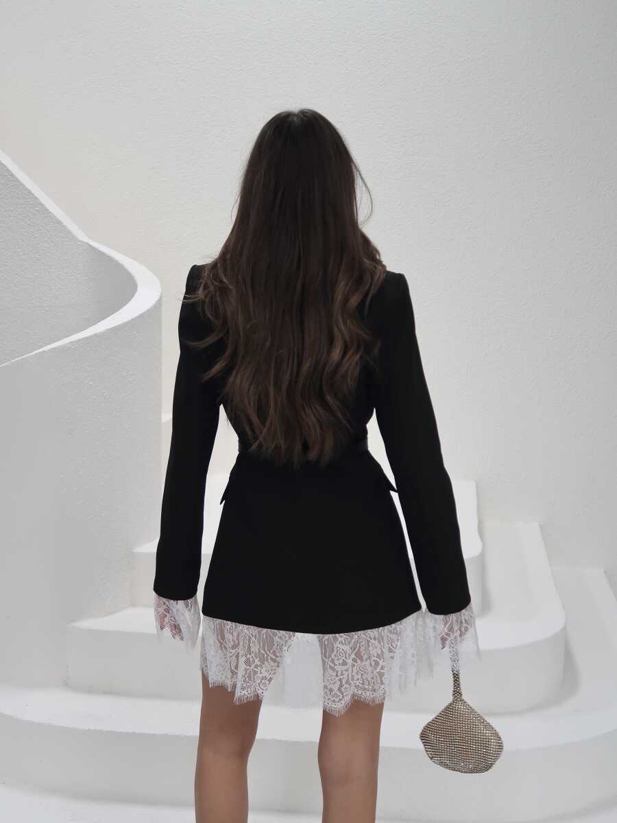 Odette Tül Detaylı Ceket Elbise - Siyah