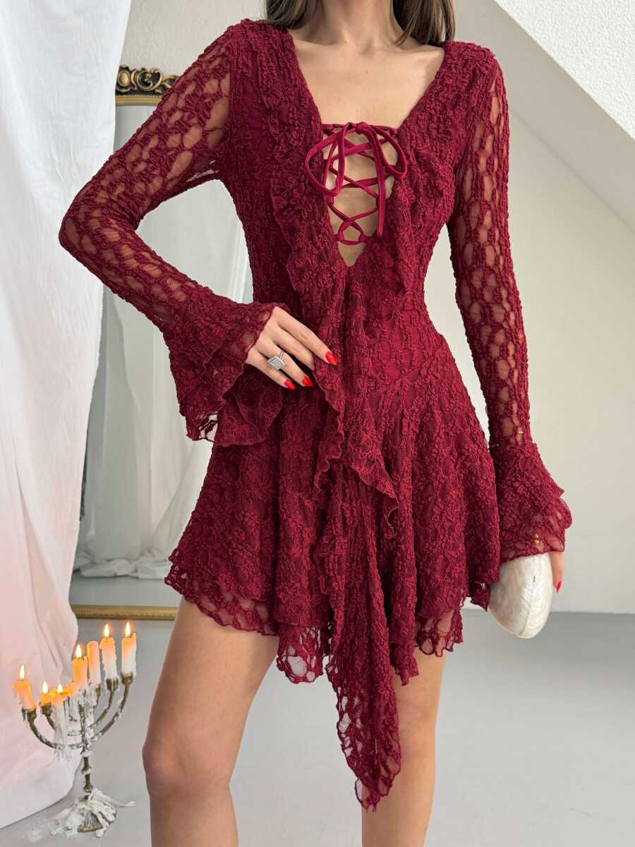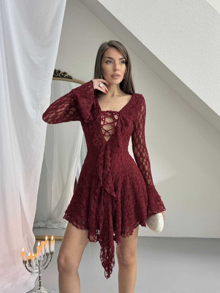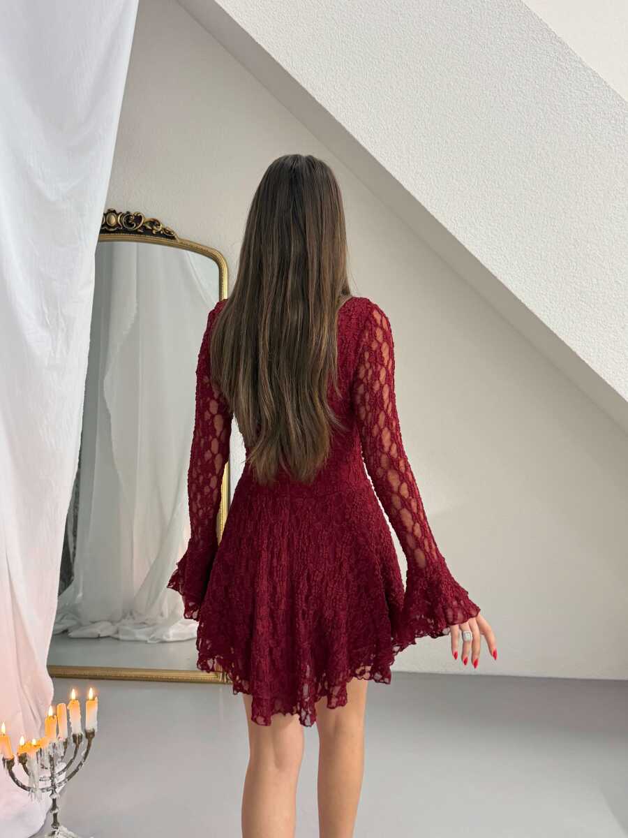 Rio Mini Elbise - Bordo
