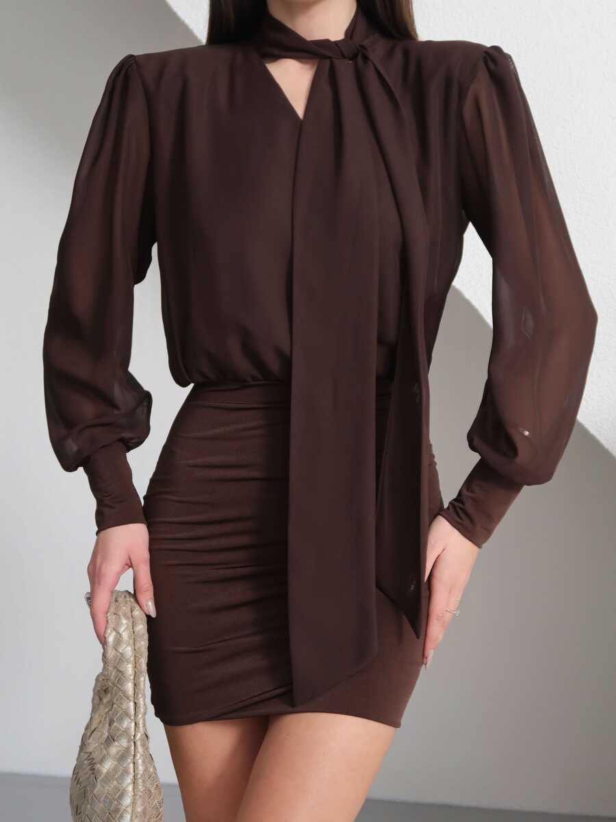 Rosalie Sırt Detaylı Mini Elbise - Acı Kahve